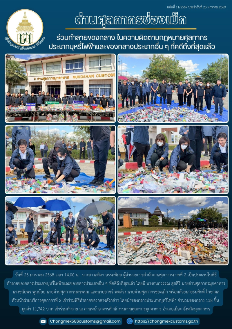 *-* ด่านศุลกากรช่องเม็ก ร่วมทำลายของกลาง ในความผิดตามกฎหมายศุลกากร ประเภทบุหรี่ไฟฟ้าและของกลางประเภทอื่น ๆ ที่คดีถึงที่สุดแล้ว *-*