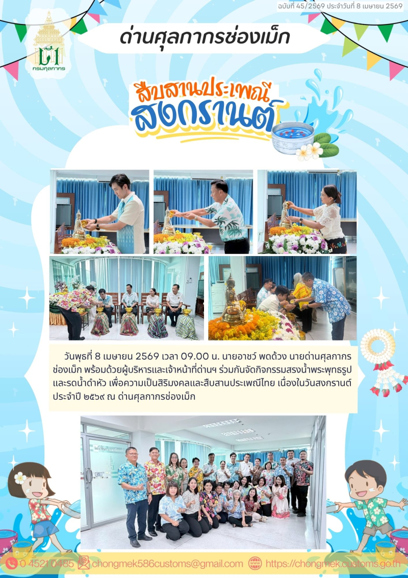*-* ด่านศุลกากรช่องเม็ก จัดกิจกรรมสรงน้ำพระพุทธรูป และรดน้ำดำหัว เนื่องในวันสงกรานต์ ประจำปี ๒๕๖๙